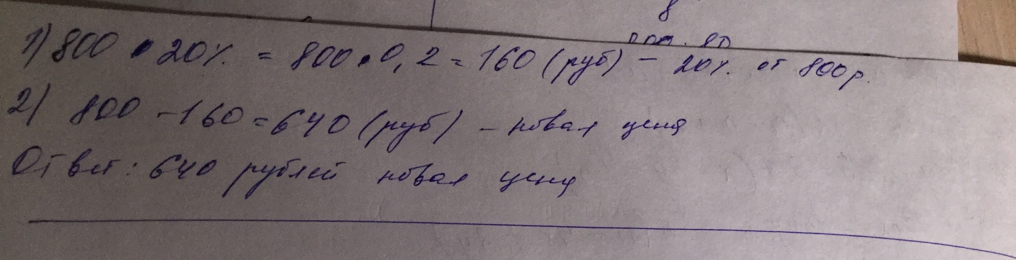 Цена рубашки которая стоила 800р на распродаже была снижена на 20% расскажите какими способами можно найти её новую цену