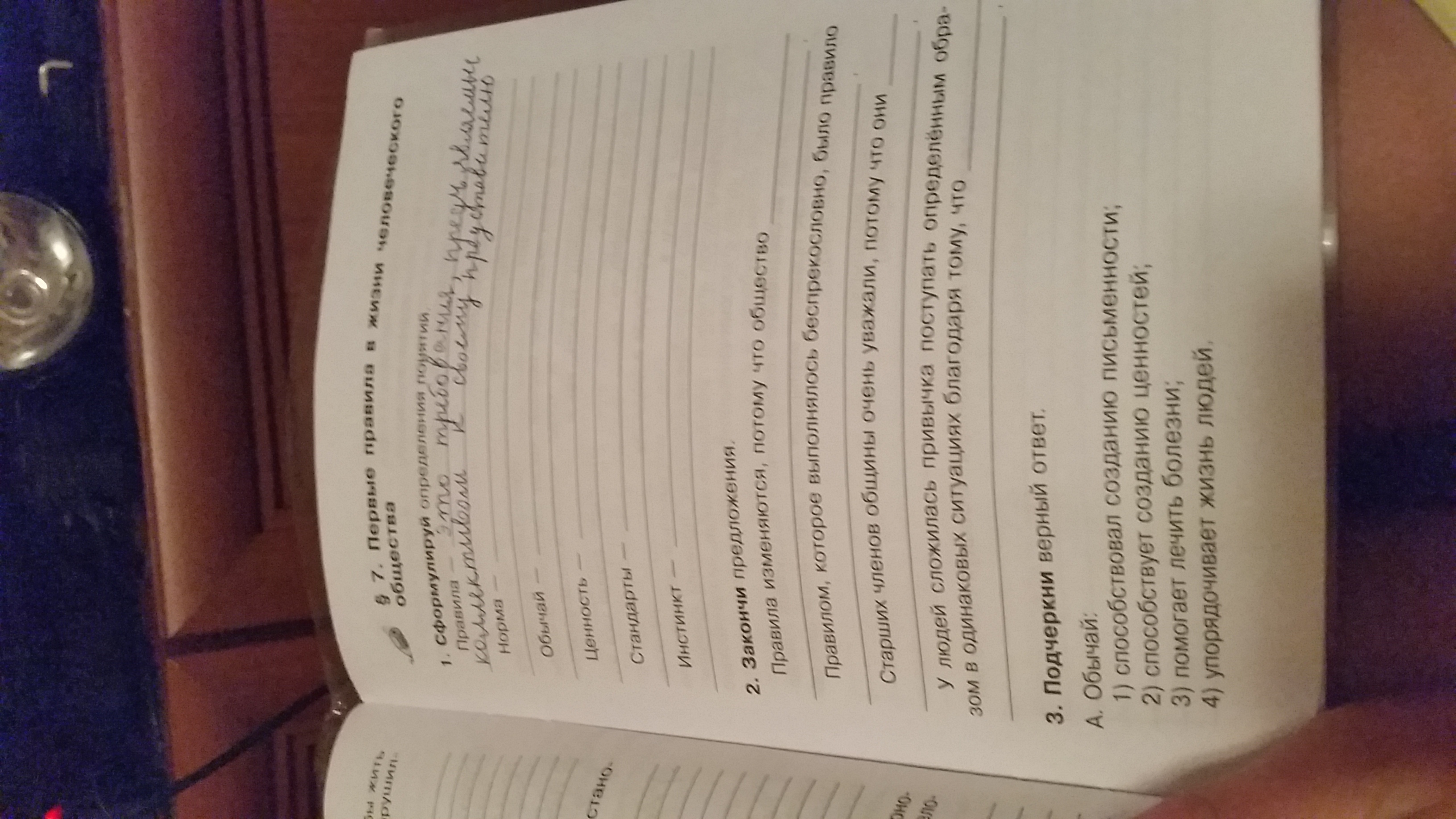 Обычай упорядочивает жизнь людей. Правильный ответ 4.