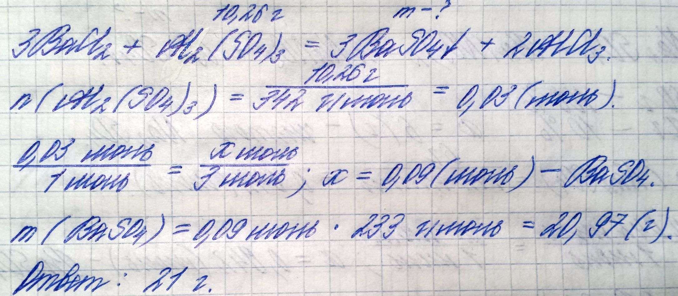 При взаимодействии раствора хлорида бария с раствором , содержащим 10, 26гр сульфата алюминия, образуется осадок. вычислить массу осадка.