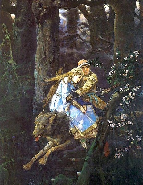 В 1889 году Васнецов написал картину “Иван – царевич на Сером волке”. В ней художник обратился к сюжету известной сказки: Серый волк помогает Ивану-царевичу совершить множество трудных дел, выпавших на его долю. В картине Васнецова царевич, бережно обняв Елену Прекрасную, скачет на Сером волке сквозь дремучую чащу расступающегося перед ним сказочного леса. В. М. Васнецов — художник, чьё творчество стало одной из вершин русского искусства. Его лучшие работы находятся в Третьяковской галерее. Картина «Иван-царевич на Сером Волке» создана в 1889 году и написана на сюжет одной из самых известных сказок. Перед нами точно широко распахивается окно в волшебный мир. Глядя на картину, мы словно погружается в волшебный мир, вместе с главными героями сказки: Иваном-царевичем и Еленой Прекрасной, которые скачут на Сером Волке подальше от владений злого царя. Волк несётся что есть духу, чтобы его не догнали. Иван-царевич тревожно всматриваются вдаль: нет ли за ними погони? Не отнимет ли злодей его счастье: Елену Прекрасную, которая доверилась любимому. За спиной у главного героя меч - царевич всегда готов встать на защиту Елены-Прекрасной. Видно, что их путь проходит через старый лес. Лес мрачен и страшен, он символизирует злые силы, окружившие главных героев. Главные герои произведения написаны яркими светлыми красками — это добрые, светлые силы. Борьба добра со злом непременно закончится победой первого, как традиционно завершаются все русские народные сказки.