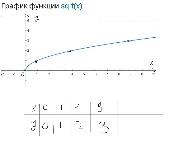 графиком является ветка параболы вдоль оси ОХ, ее можно построить по точкам придавая х неотрицательные значения