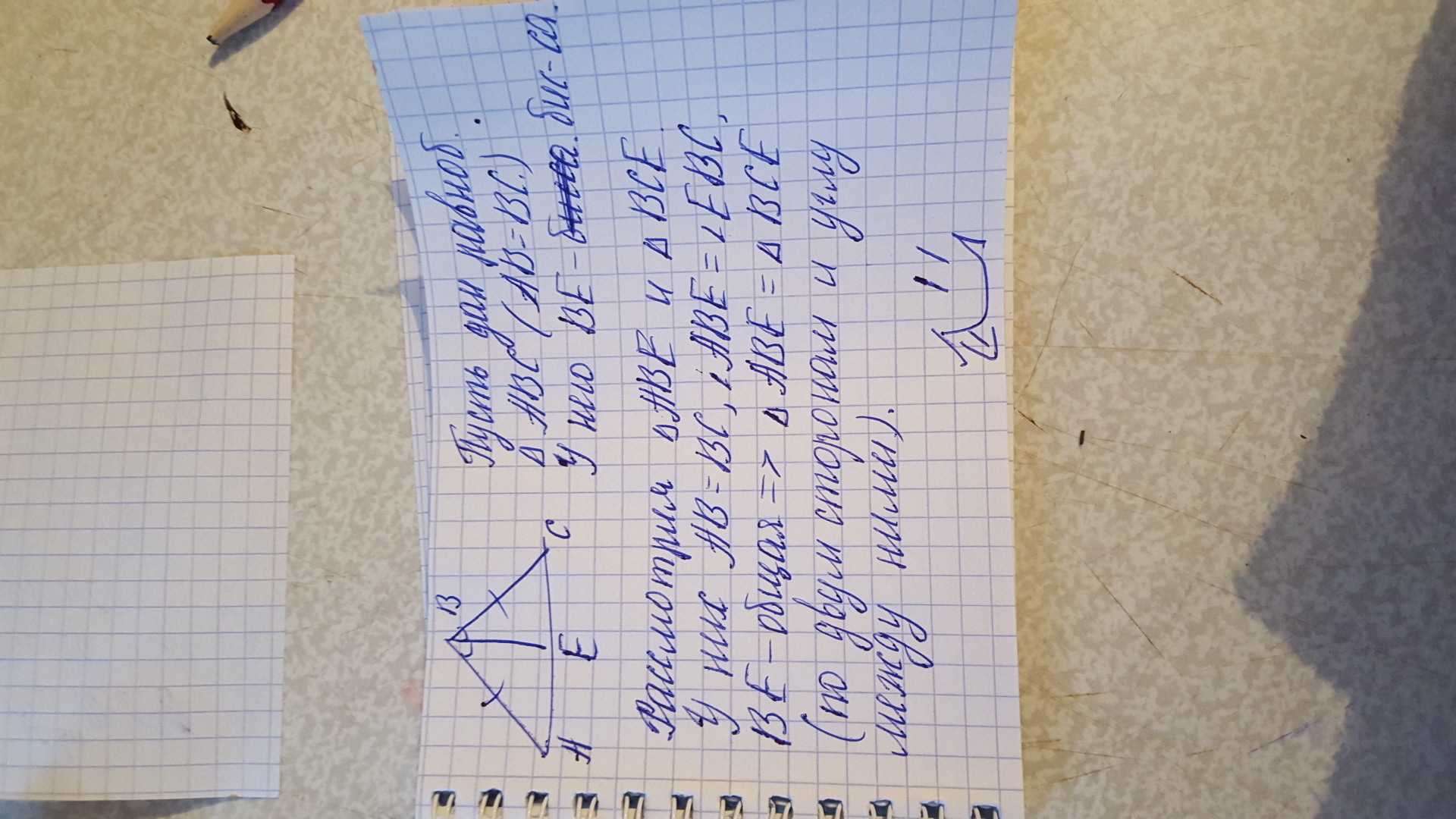 треугольник авс равнобедренный с основанием ас,be биссектриса.Докажите что треугольники аве и све равны