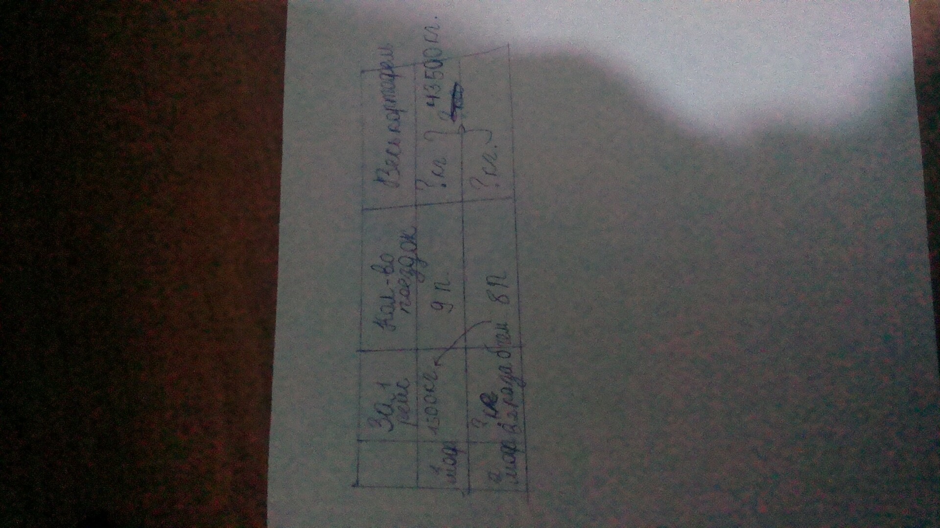 два шофёра должны за сутки вывезти с поля 43500 кг картофеля. Первая машина совершила 9 поездок и перевозила за один рейс 1500 кг, вторая совершила 8 поездок и за каждый рейс перевозила в 2 раза больше первой. Весь картофель вывезен поля? Помогите записать условие задачи в виде таблицы. Очень нужна помощь, пожалуйста.