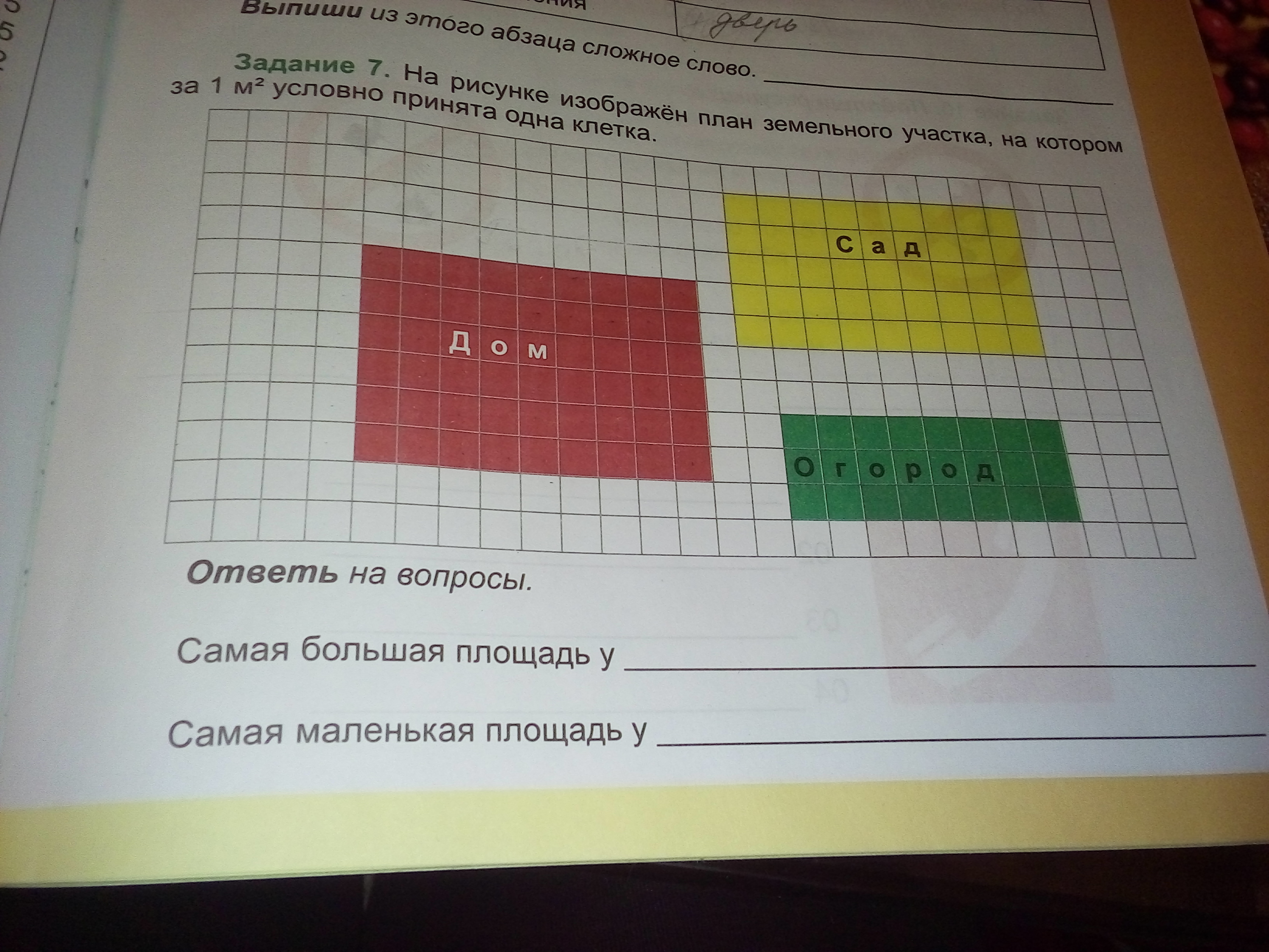 самая маленькая площадь у огорода(3*8=24)