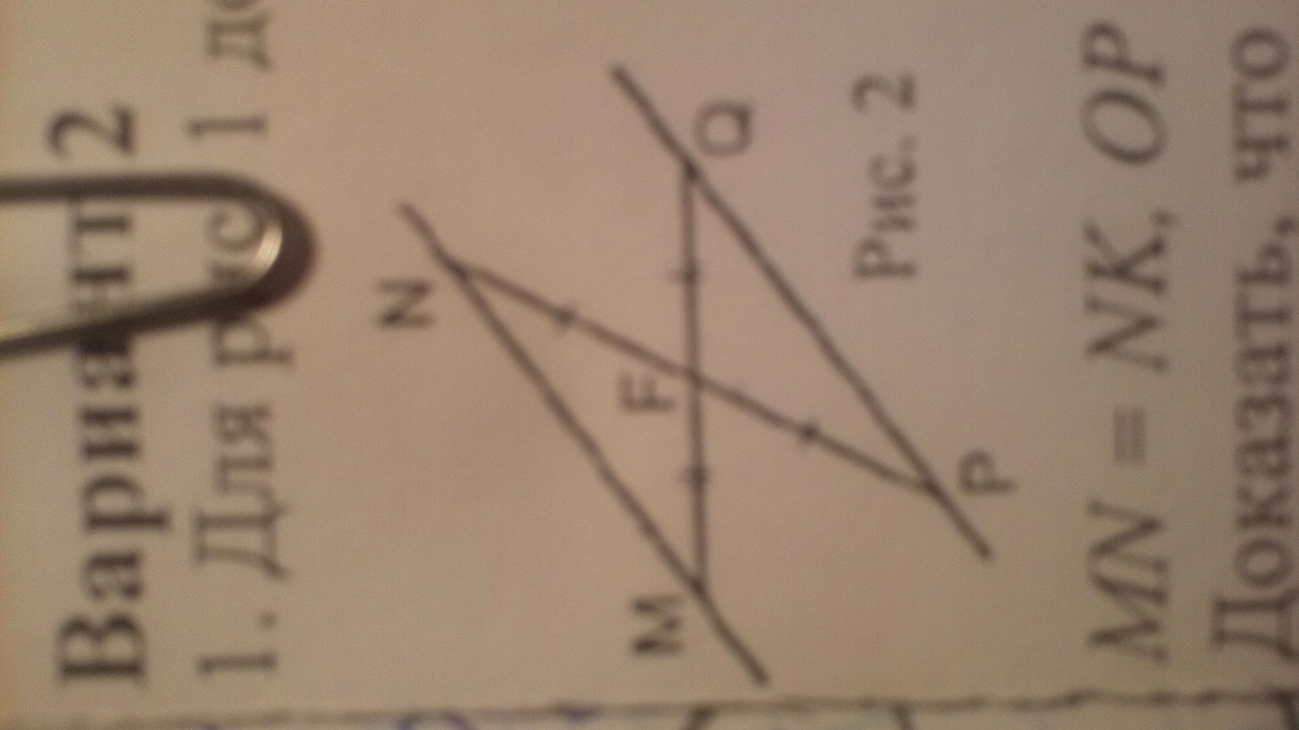 значит в равных треугольниках против равных сторон лежат равные углы и значит , что углы при этих прямых MN PQ равны и они будут паралельны по признаку накрест лежащие углы равны