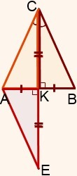 1) AK=BK (так как CK — медиана по условию)