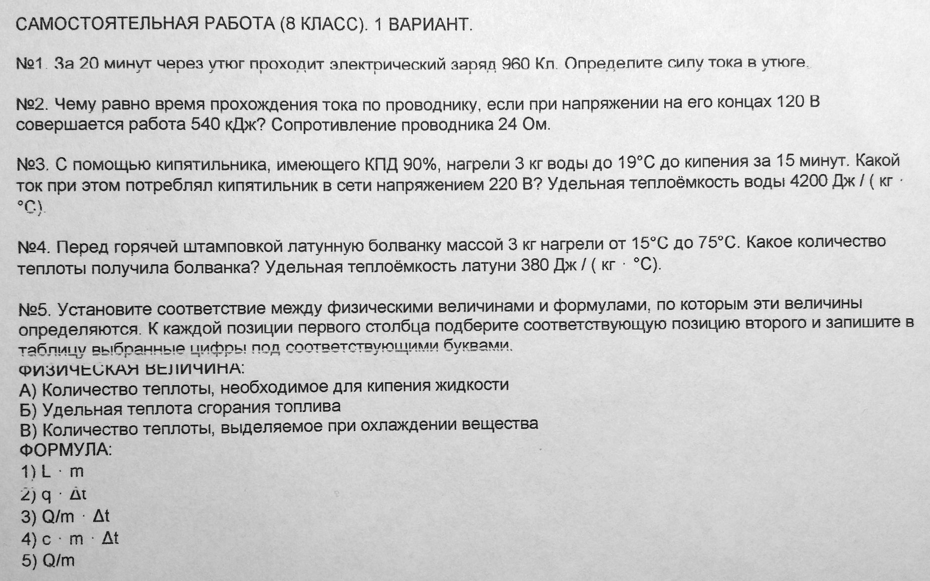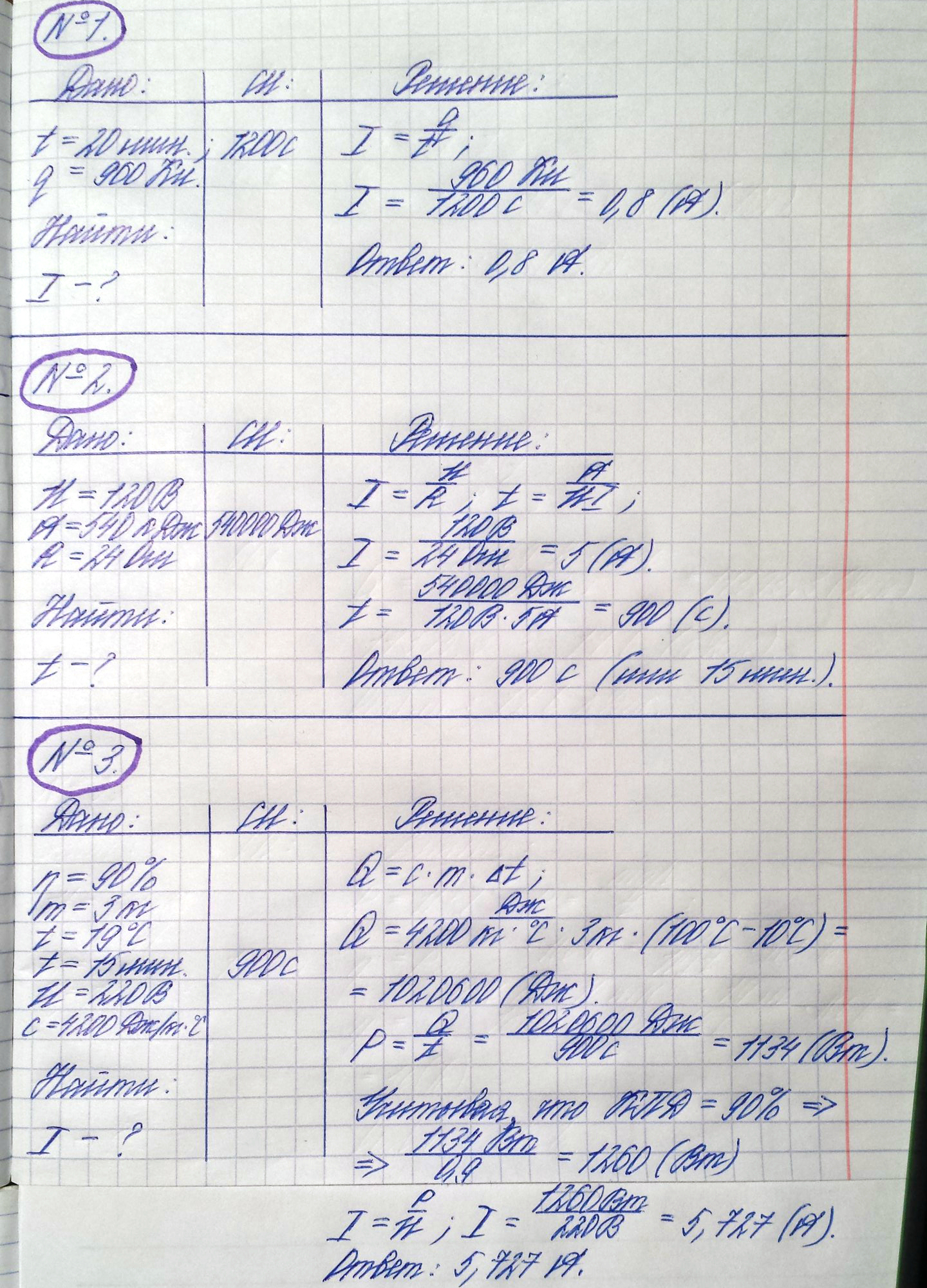 №1. За 20 минут через утюг проходит электрический заряд 960 Кл. Определите силу тока в утюге.