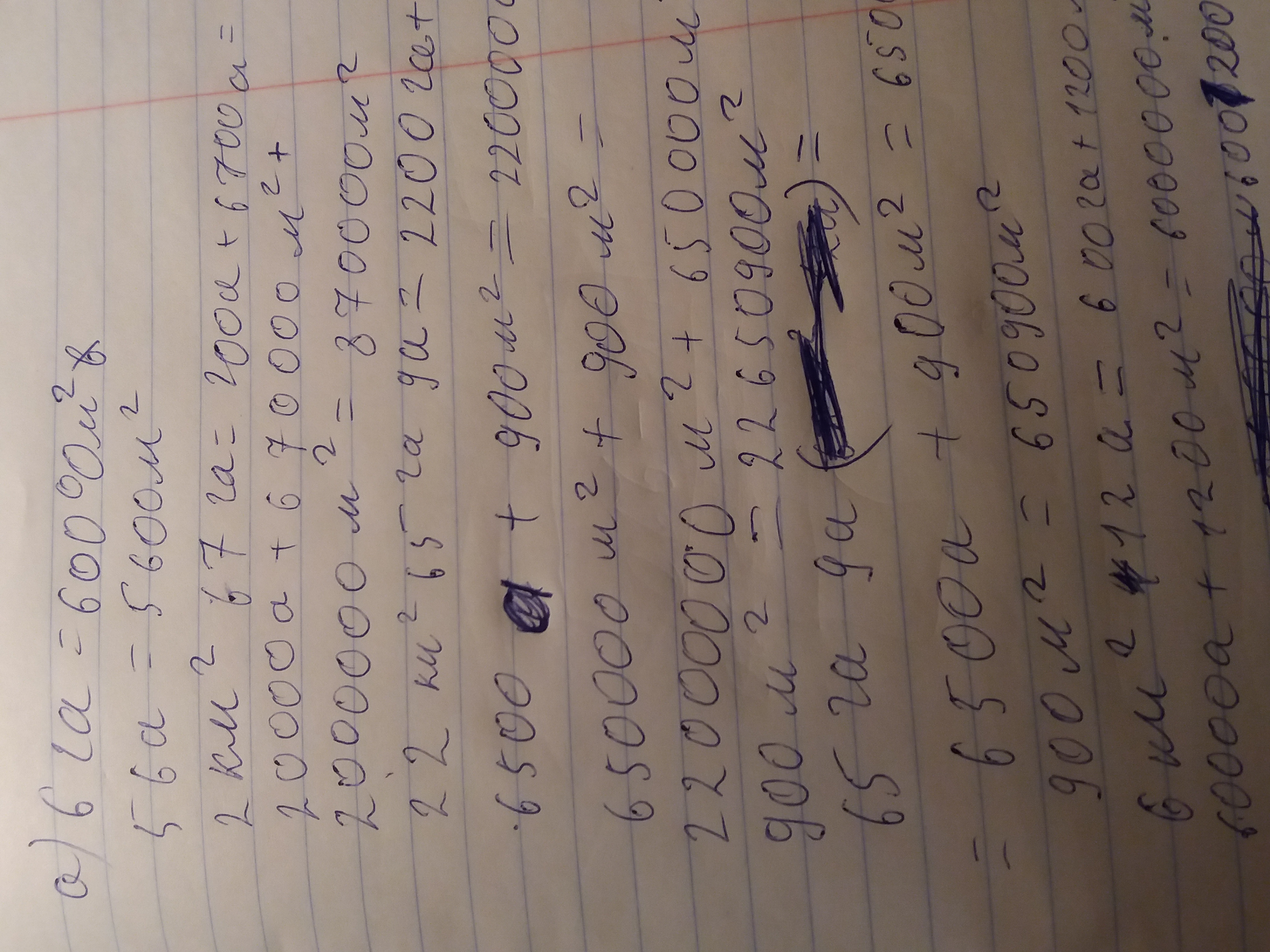 в квадратных метрах а)6га 56а,2 кв км 67га ,22кв км 65га 9а 6кв км 12а