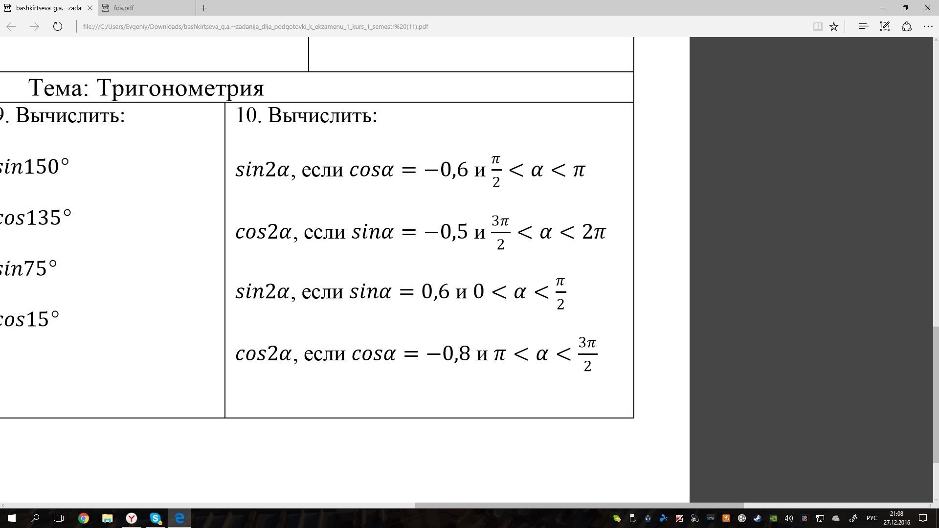 Cos2α=(-0,8)²-(-0,6)²=0,64-0,36=0,28