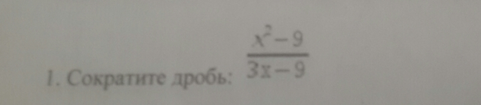(х²-9)/(3х-9) = ((х-3)(х+3))/(3(х-3)) = (х+3)/3 , при х ≠ 3 (т.к. 3х-9 ≠ 0)
