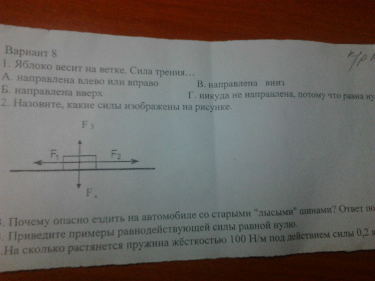 2)F2-это сила тяги. F1-трения F3-сила реакции опоры F4-сила тяжести