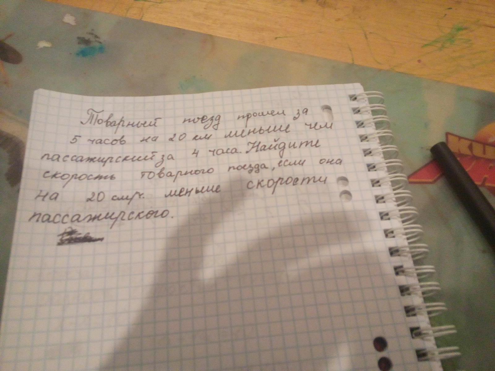 V2=80-20=60 скорость товарного поезда