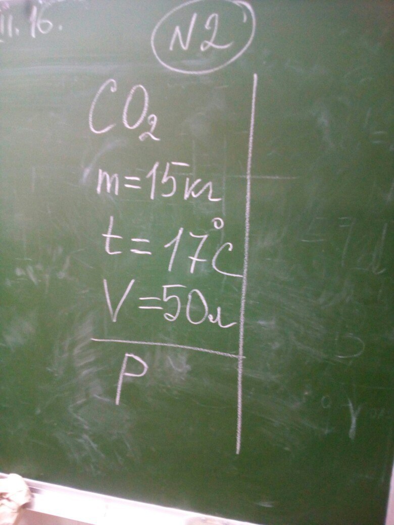 p=m*R*T/(M*V)=15*8.31*290/(44-10^-3*50*10^-3)=16.4*10^6 Па
