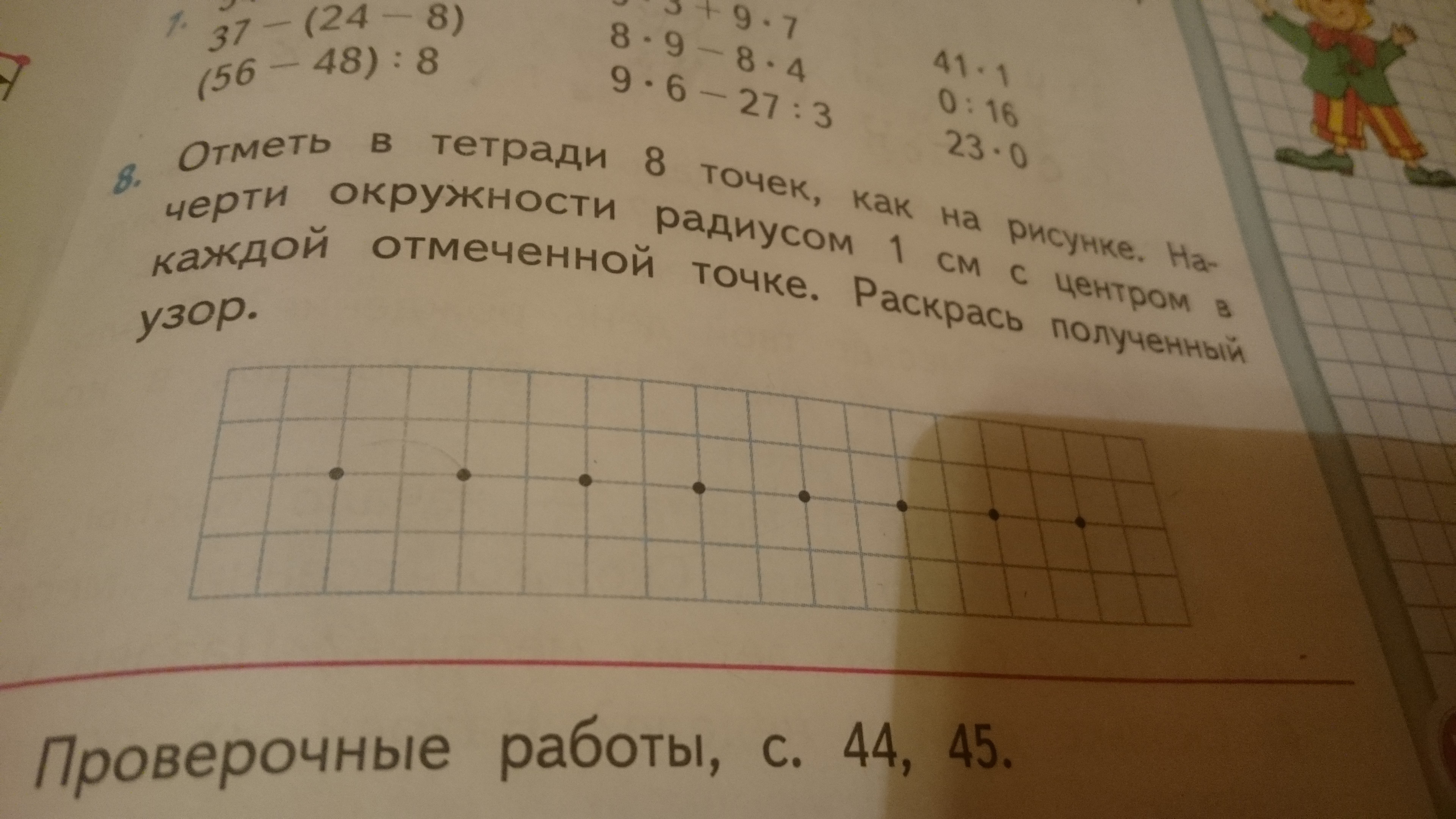 острый конец цыркуля ставите на одну из точек, другой конец на соседею точку, рисуете круг. И так с каждой точкой. Потом разразкрашиваете