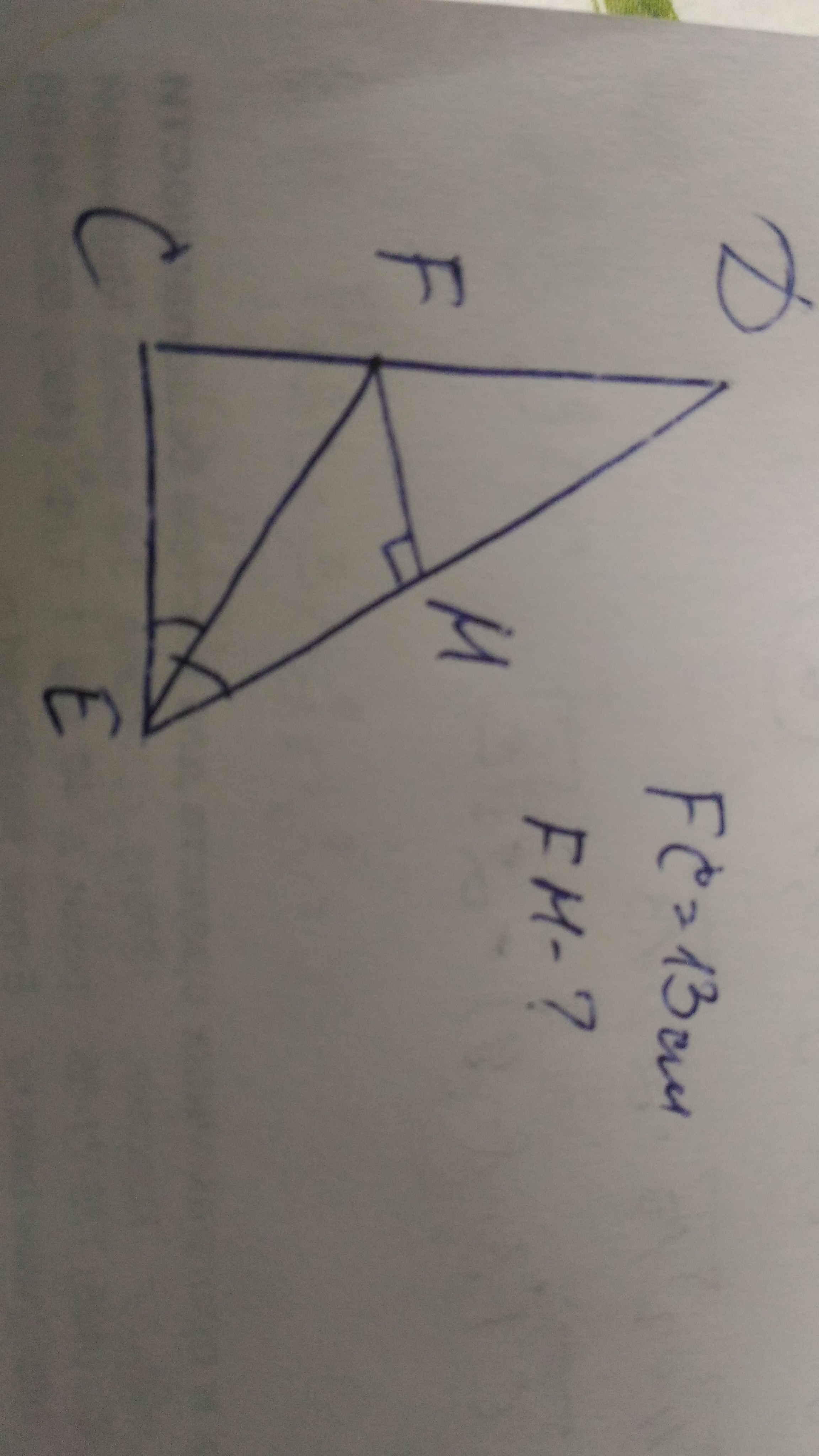 )В прямоугольном треугольнике DCE с прямым углом С проведена биссектриса EF, причём FC = 13 см. Найдите расстояние от точки F до прямой DE.