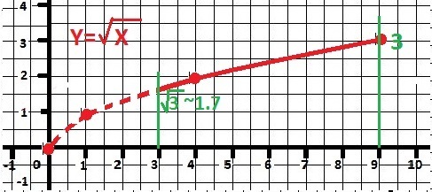 постройте график функции y=√x по графику найдите : а) наибольшее и наименьшее значения функции на отрезке [3;9];