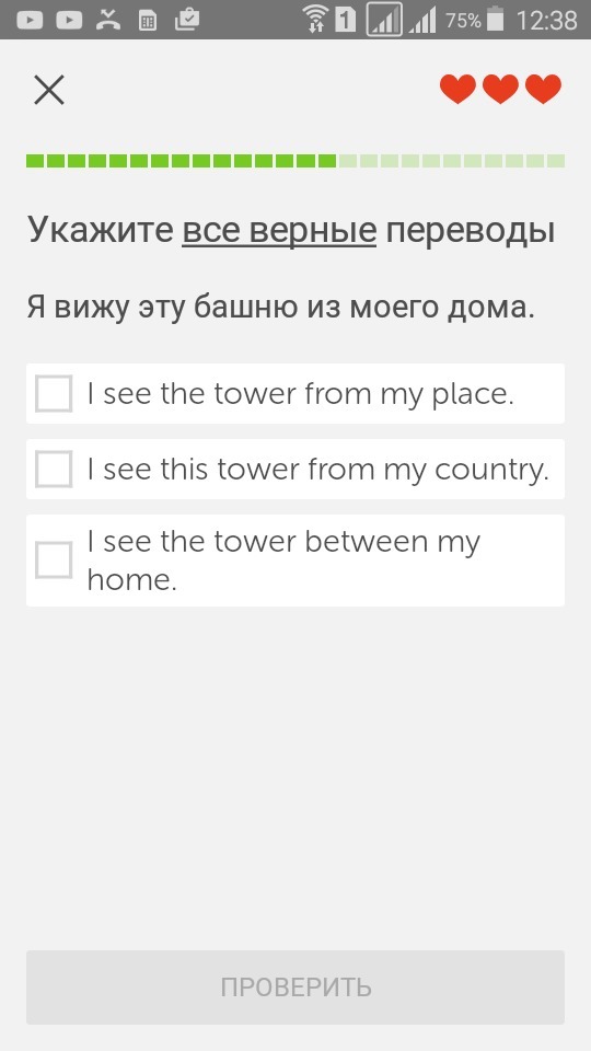 Правильный будет только первый, так как остальные переводятся : я вижу эту башню из моей деревни; я вижу эту башню между моим домом