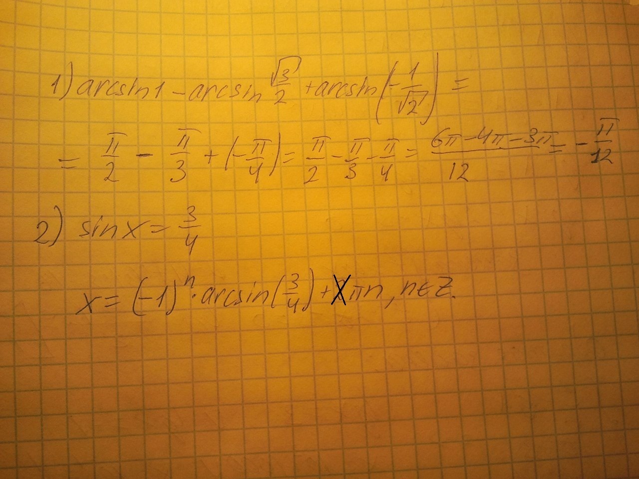 1) arcsin 1- arcsin корень из 3/2+arcsin(-1/корень из2)