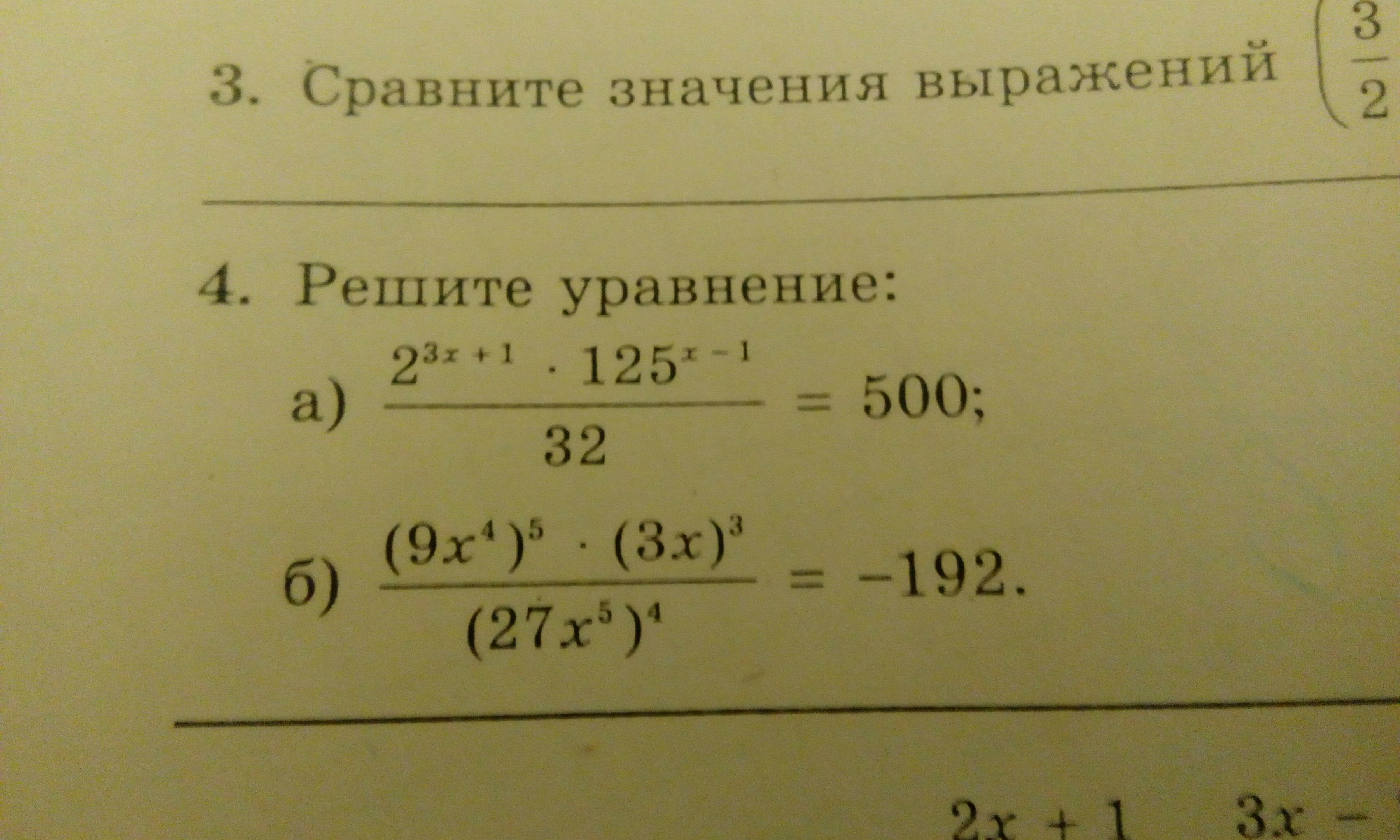 (2^(3x+1)*125^(x-1)) /32=500, 125=5^3, 32=2^5, 2^(3x+1) / 2^5=2^(3x-4)