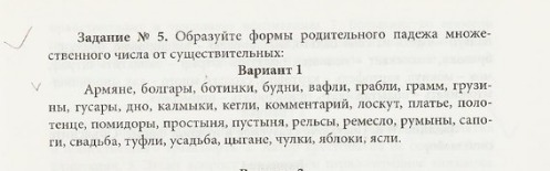 Армян, болгар, ботинок, будней, вафлей,граблей, грамм, грузин, гусар, дна, калмыков, кеглей, комментария, лоскута, платья, полотенца, помидоров, простыни, пустыни, рельсов, ремесла, румын, сапогов, туфлей, усадьбы, цыган, чулков, яблок, яслей.