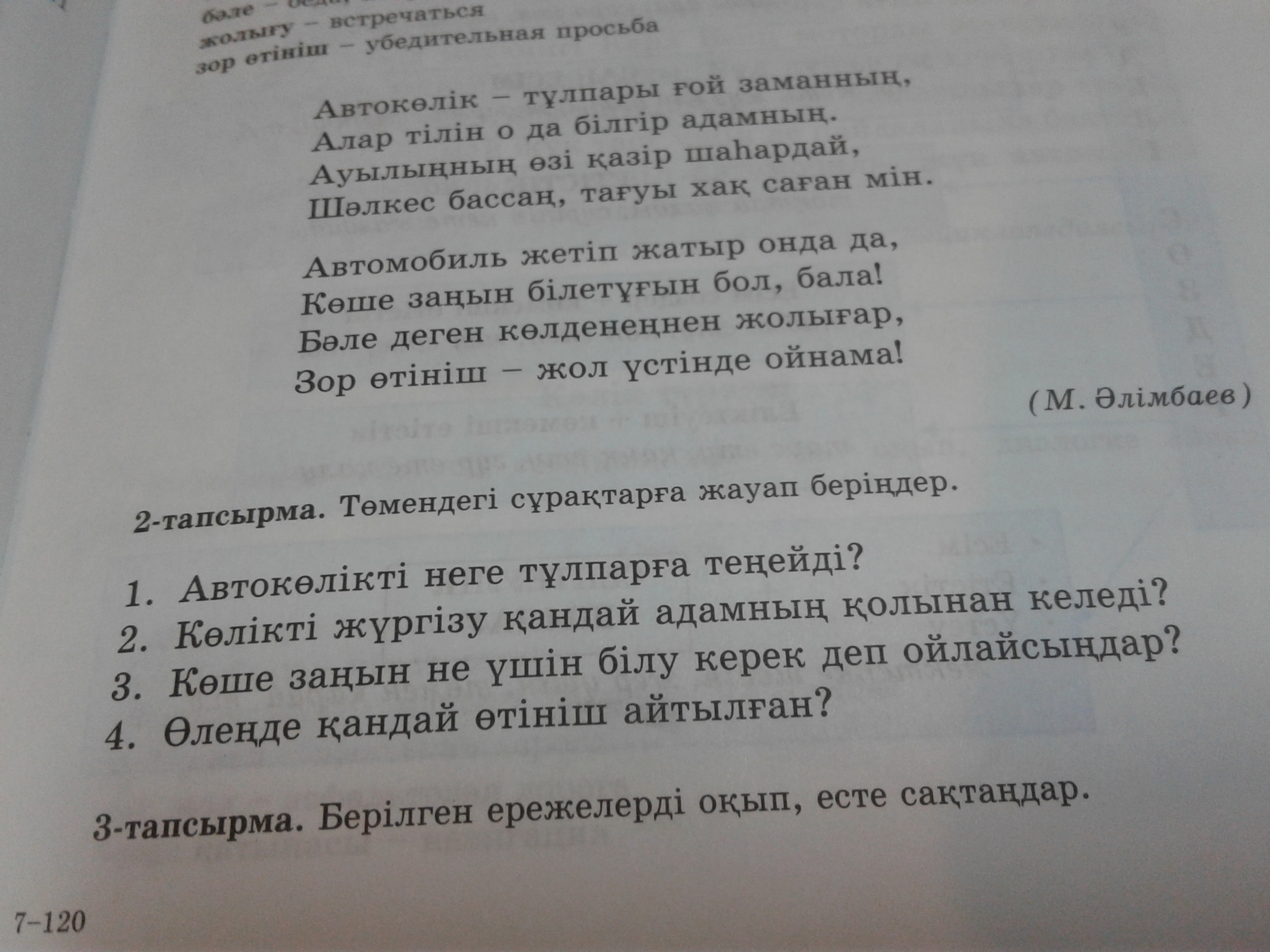 1. Қазіргі заманда автокөліктер адамды қалаған жерге жылдам жеткізіп салатындықтан оны тұлпарға теңейді. Себебі бұрынғы заманда тұлпарды көлік ретінде пайдаланған.