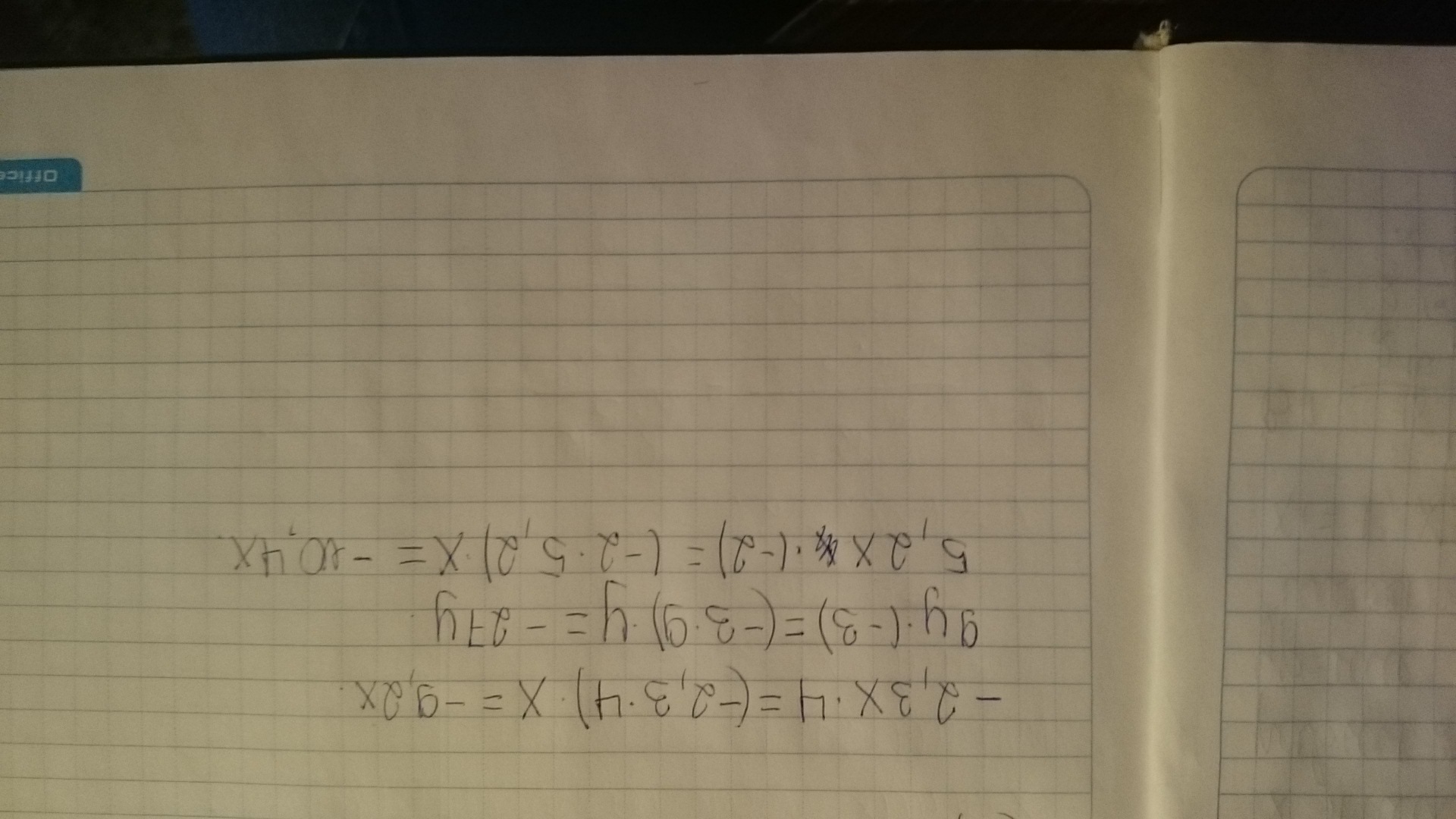 Упростите выражение, используя переместительное и сочетательное свойства умножения: -2,3x*4; 9y*(-3); 5,2x*(-2)