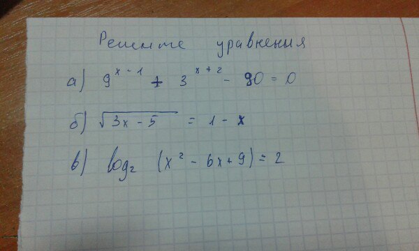 a) (3^(x-1))^2 +27*3^(x-1)-90=0,
