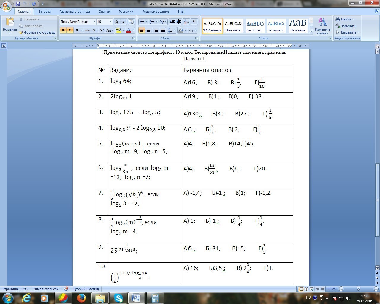 25^(2/log(81)25)=25^log(25)81=81 Б
