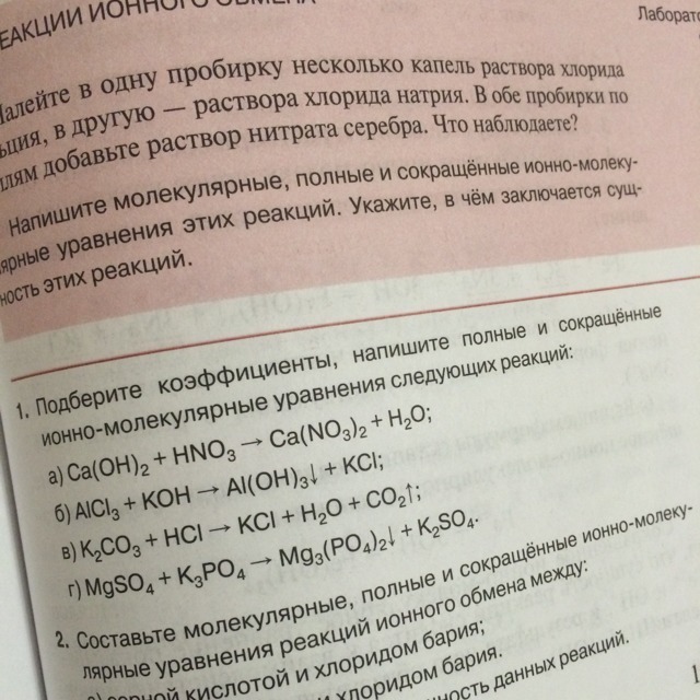 смотри в таблице растворимости солей (осадок или нет), с коэффициентами. блин... даж не знаю как объяснить. в левой и правой части все должно быть одинаково и кислород считаем в последнюю очередь (а так есть сайты где вбиваешь уравнение и он сам все уравнивает)