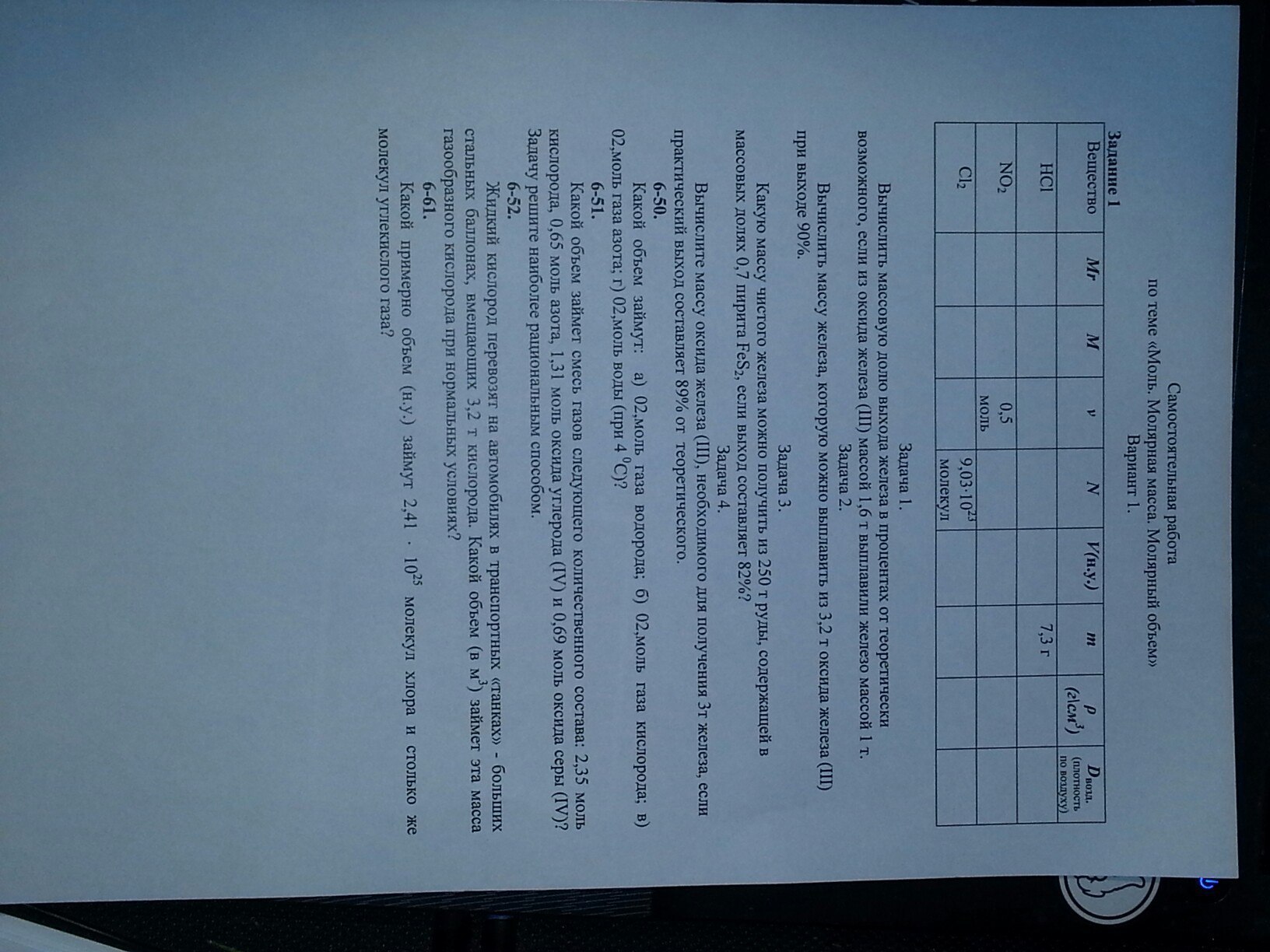 Химия 11 класс , моль , молярный объем . Прошу решить основную часть (таблица + 1-4)