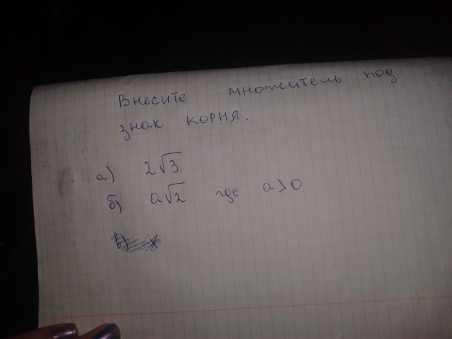 a) √4*3=√12 б) √a^2*2 ///////////////////////////////