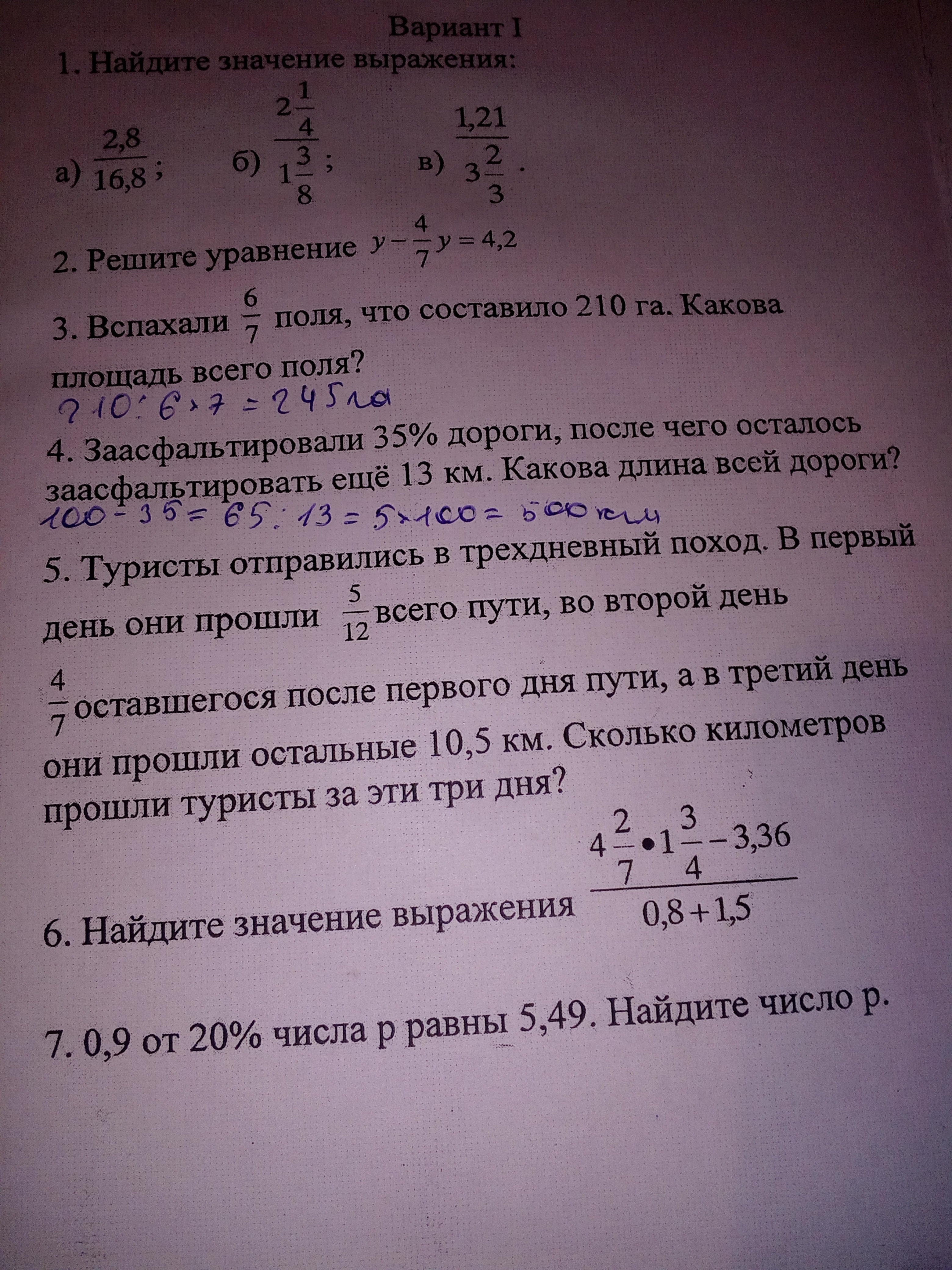 10,5 км это 1/4 часть пути, значит весь путь = 10,5 : 1/4 = 42 (км)