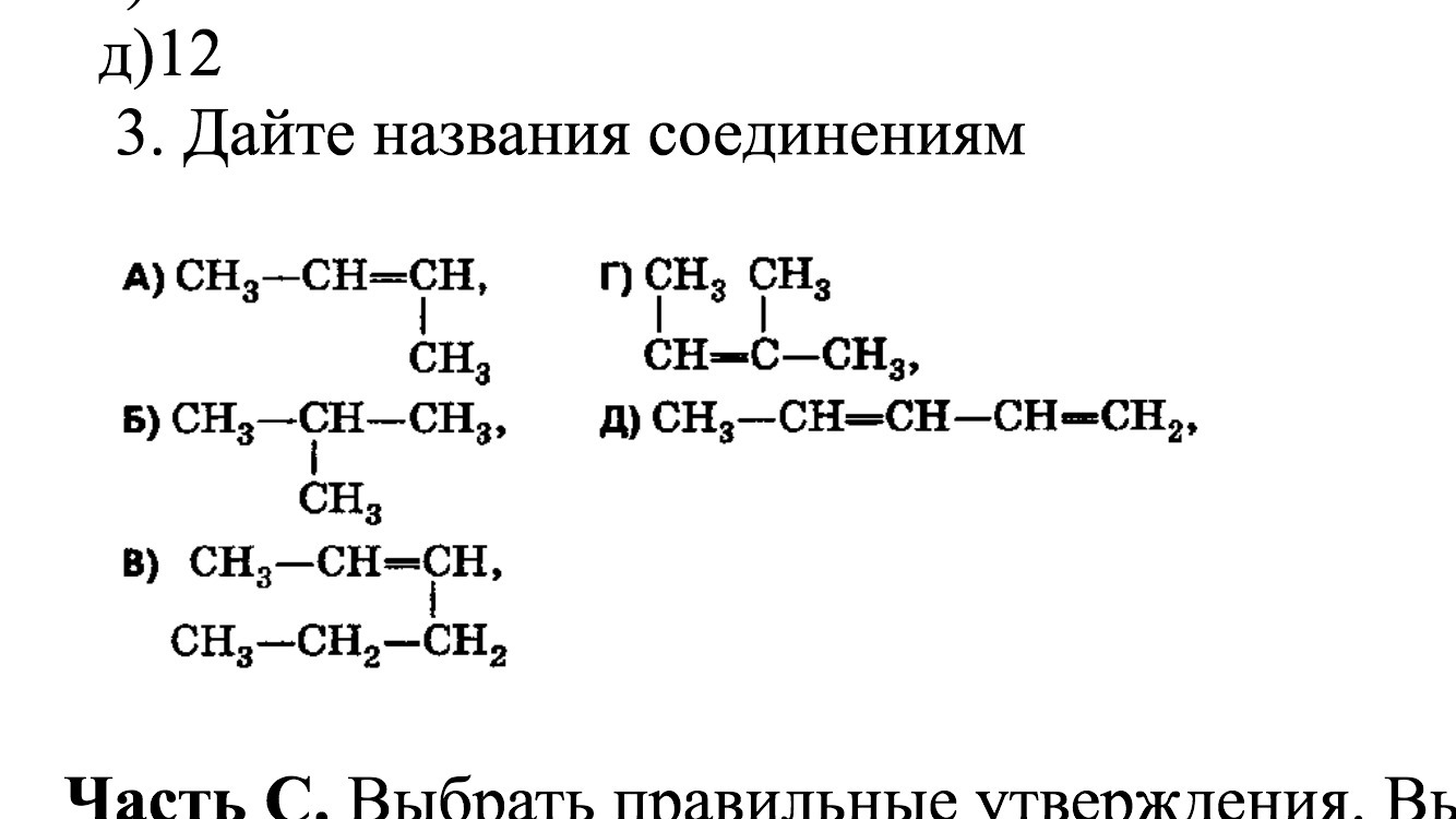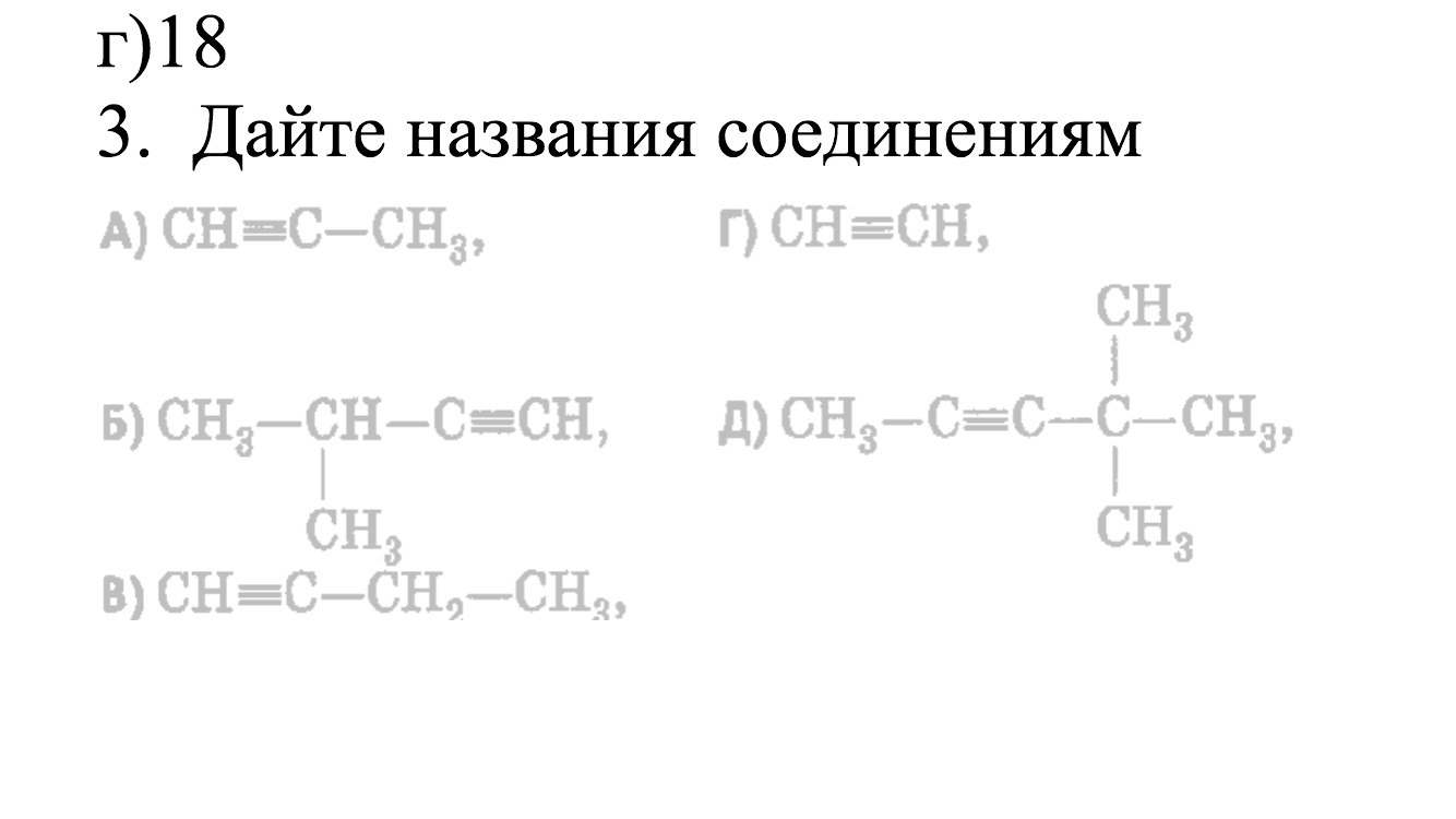 3) а) пропин; б) 3-метилбутин-1; в) бутин-1; г) этин, ацетилен,