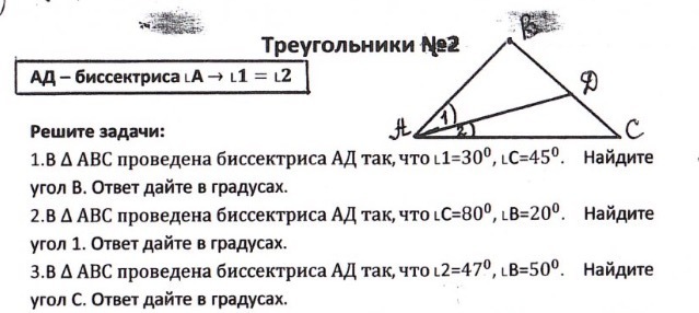 1: т.к. ПД биссектриса, то угол ВАД= угол ДАС=30', тогда весь угол ВАС=60'