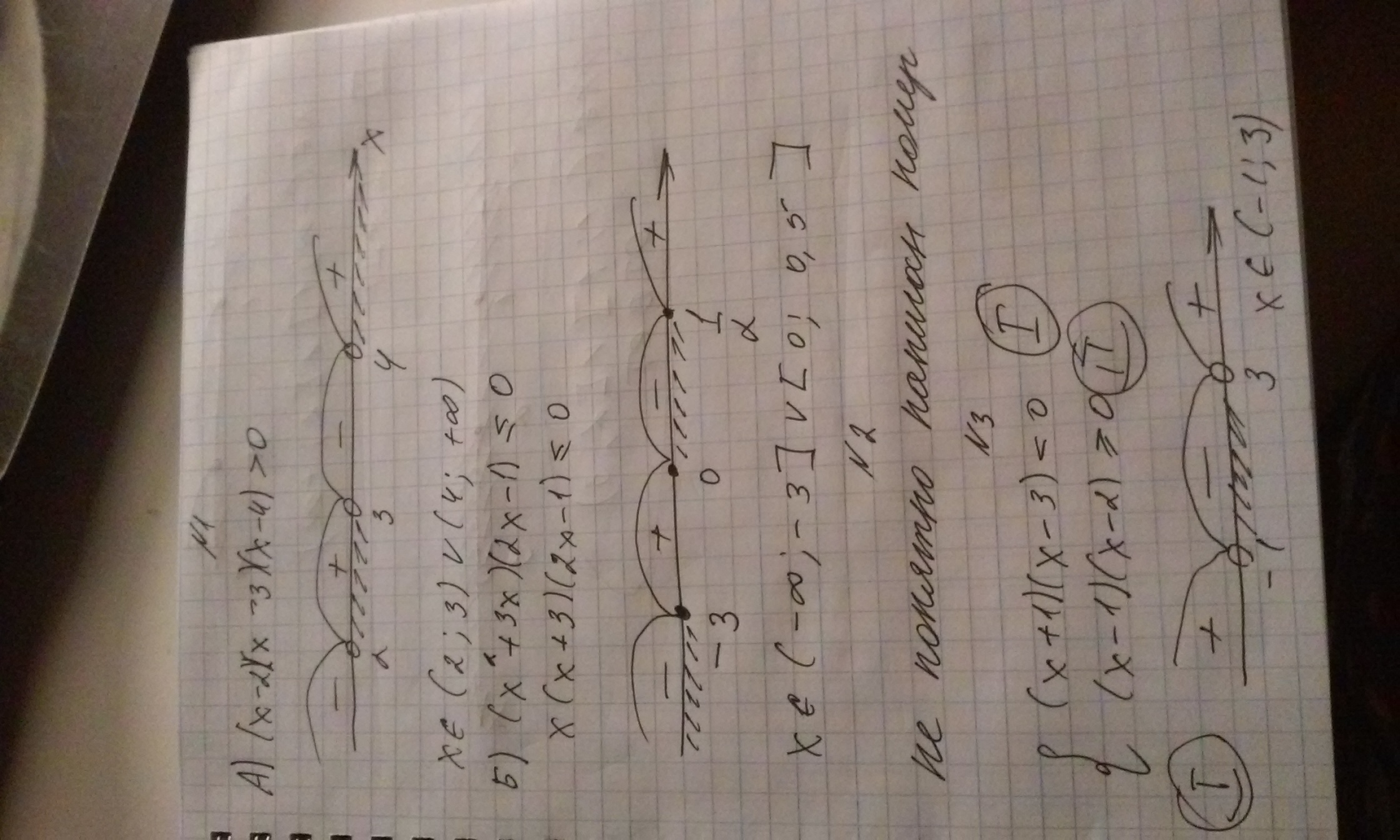 А) (х-2)(х-3)(х-4)>0. Б) (х в квадрате +3х)(2х-1)меньше или равно 0.