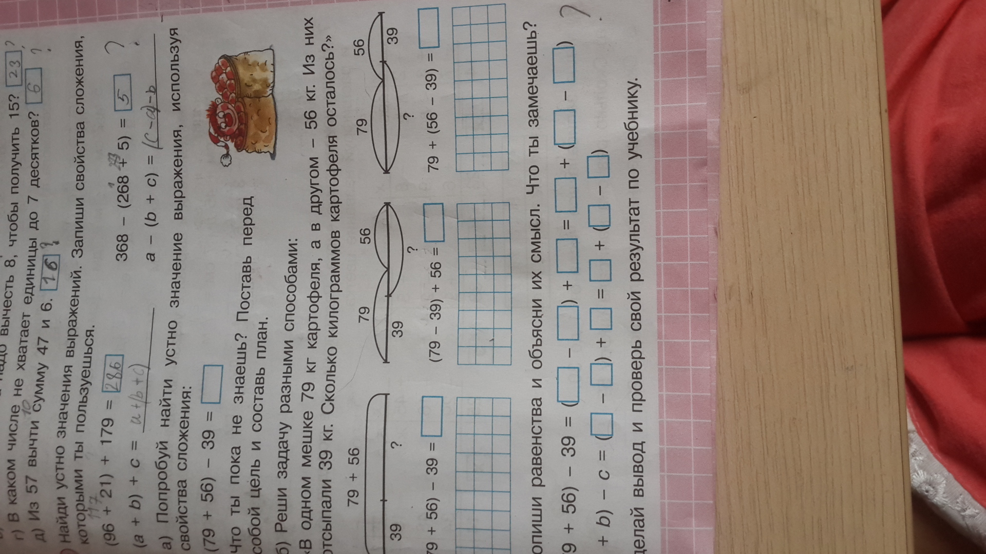 реши задачу разными способами в одном мешке 79 килограмм картофеля а в другом 56 килограмм из них отсыпали 39 кг сколько килограммов картофеля осталось