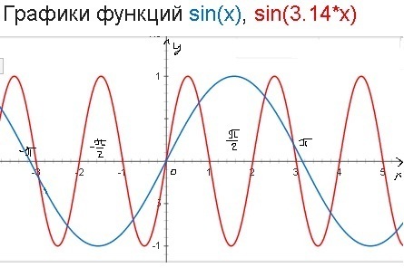надо построить график у=sin(x) а затем сжать его в π раз вдоль оси ОХ