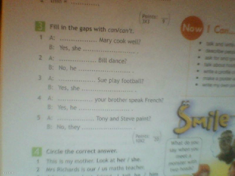 Нужно вставить подходящий глагол can-уметь , cant-не уметь