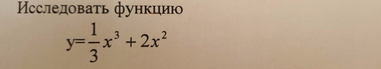 Помогите, пожалуйста, исследовать функцию у=1/3*x^3+2x^2