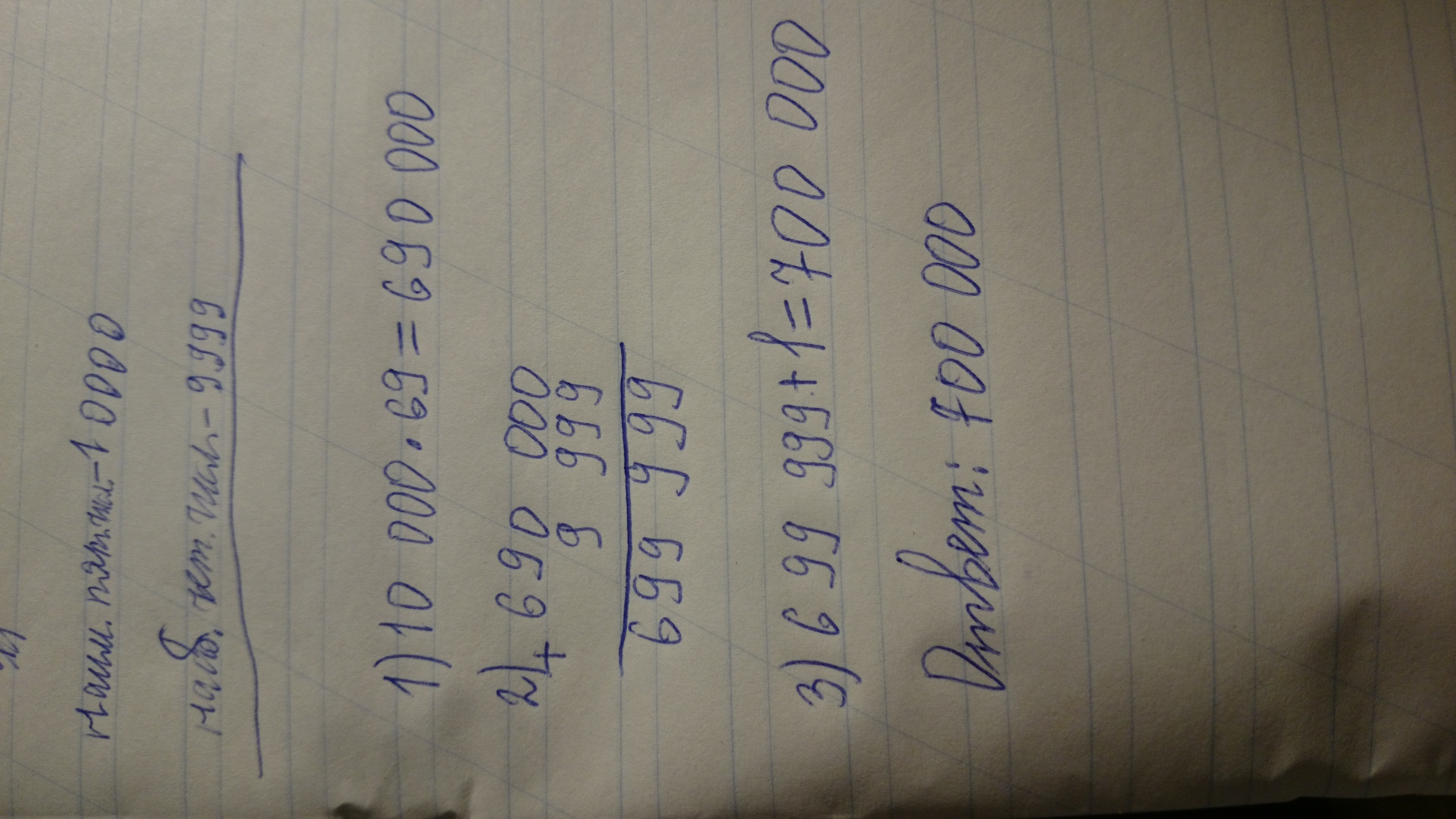 наименьшее пятизначное число увеличь в 69 раз. Прибавь к произведению наимбольшее четырёх значное число. Приавь к суме еденицу