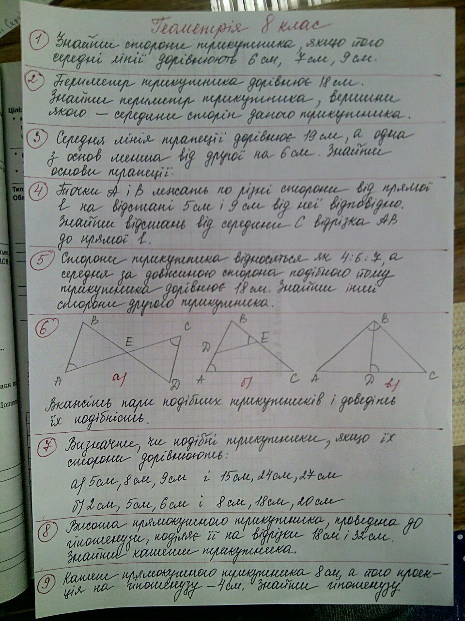 Аналогично, если средние линии равны 7 см и 9 см, то стороны, параллельные им, равны 14 см и 18 см.