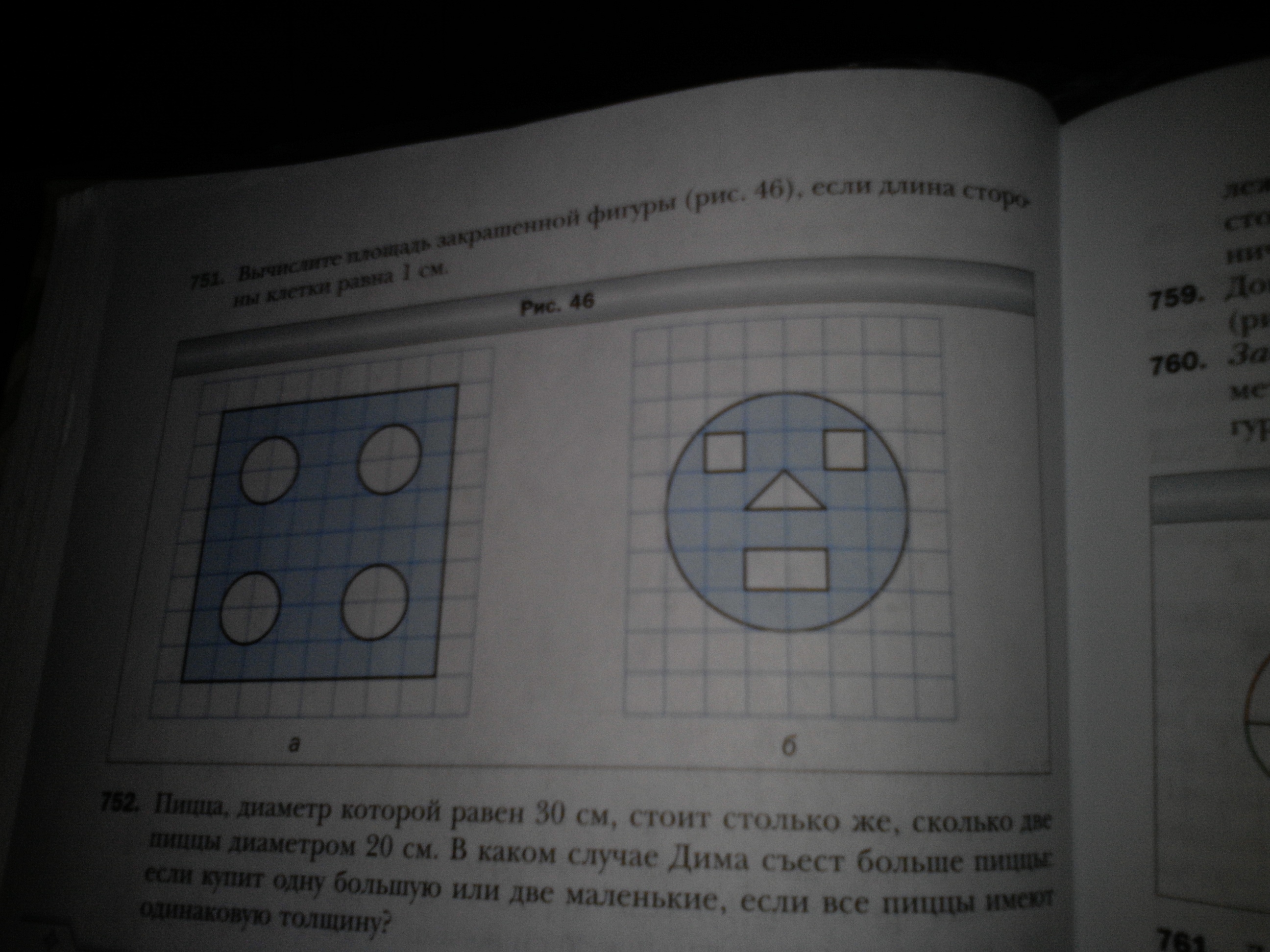 Нужно от площади круга отнять 2 площади квадрата,площадь прямоугольника и площадь треугольника