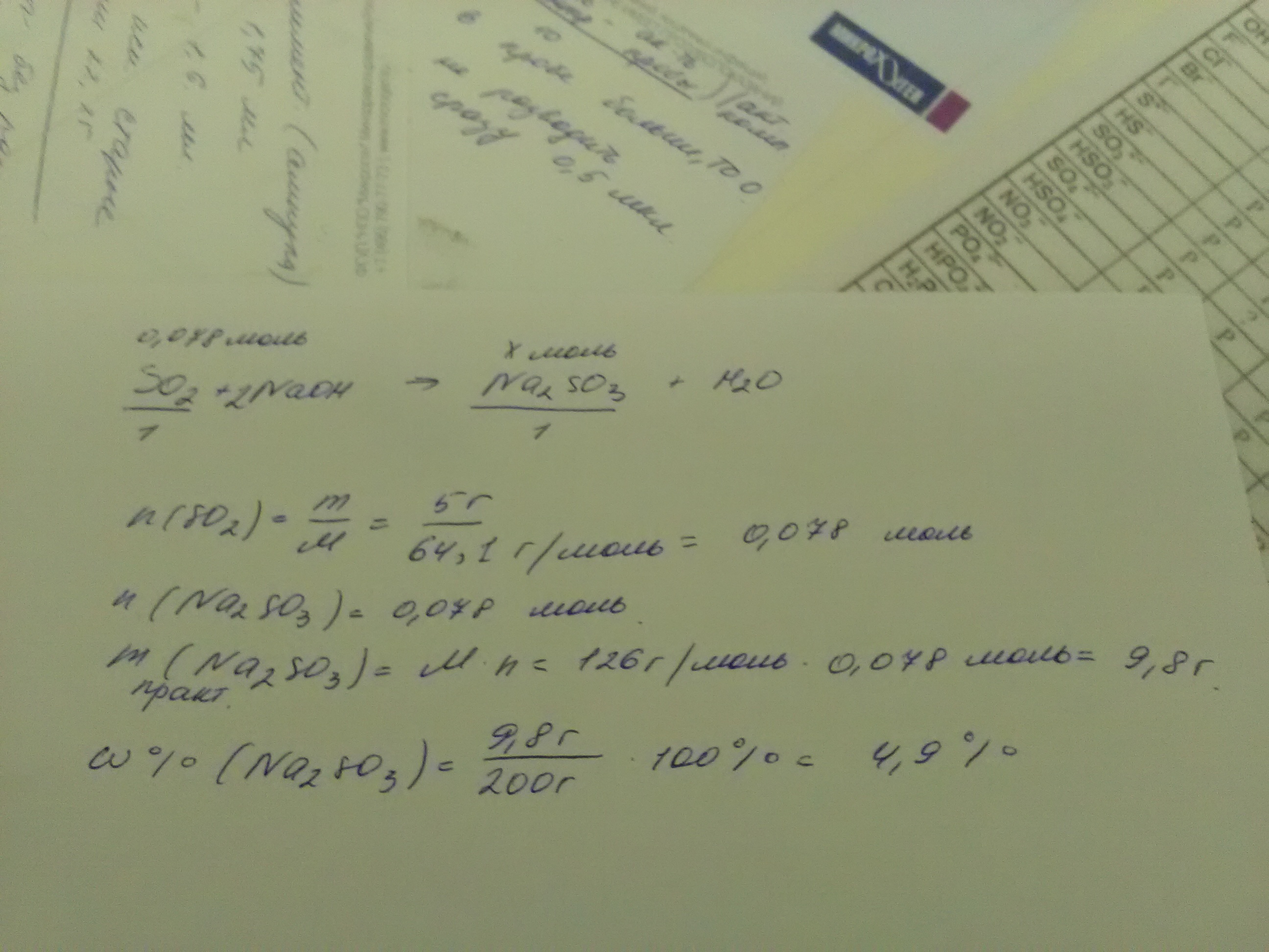 при взаимодействии 5,0 г оксида серы 4 с избытком раствора гидроксида натрия получили 200 г раствора средней соли. Вычислите массовую долю в полученом растворе.