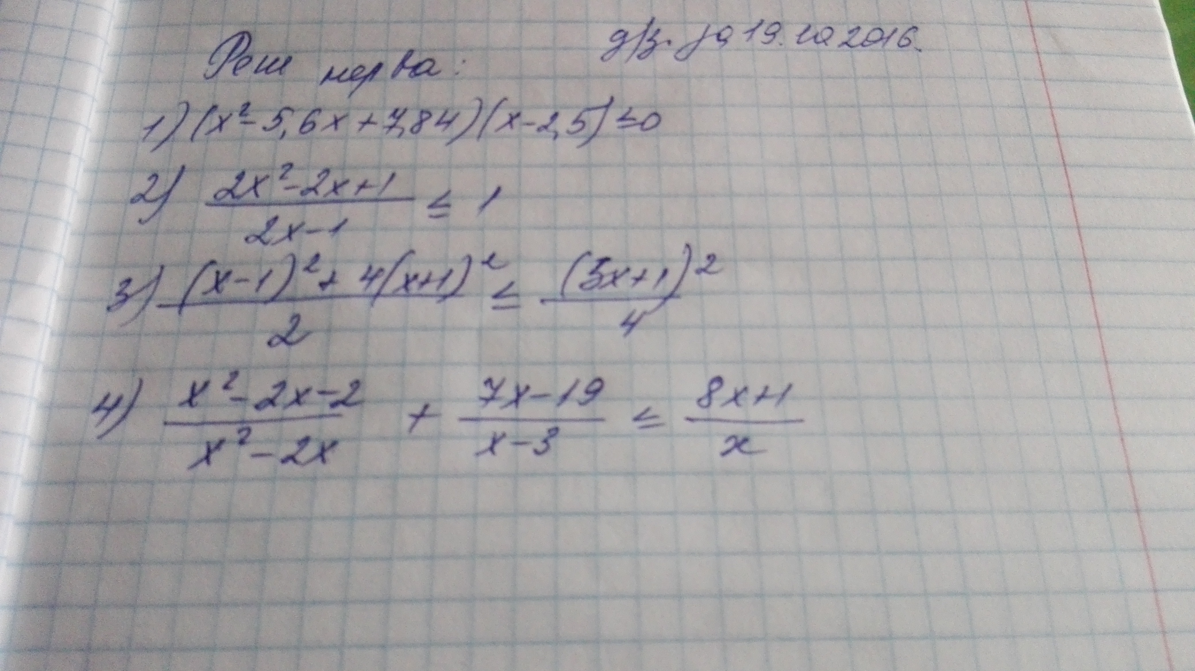 1/ x²-5.6x+7.84=0 D=5.6²-4*7.84=31.36-31.36=0→ имеем (x-2.8)² выражение =0 при x=2.8 ; >0 x≠2.8
