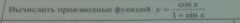 y= frac{cosx}{1+sinx} \\y'= frac{-sinx(1+sinx)-cosxcdot cosx}{(1+sinx)^2} = frac{-1-sinx}{(1+sinx)^2}=-frac{1}{1+sinx}