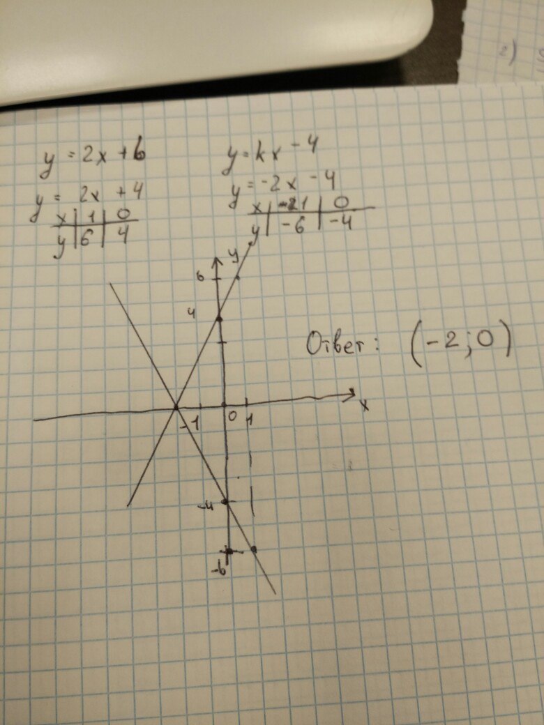 Графики функций y=2x+b и y=kx-4 симметричны относительно оси абсцисс