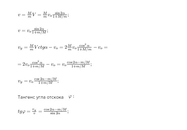 Будем считать, что скорость шара после отскока направлена вбок и ВВРЕХ. Именно из этих соображений далее будем записывать законы сохранения (если получится отрицательное значение скорости, то значит, она направлена – вниз). Обозначим горизонтальную составляющую конечной скорости шара, как