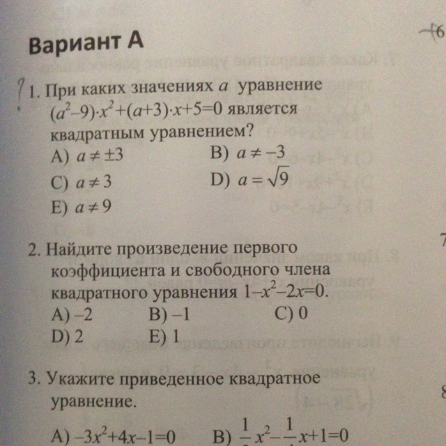 Ответ: А. Приведем уравнение к нормальному ному виду: -х^2-2х+1=0. |*(-1)