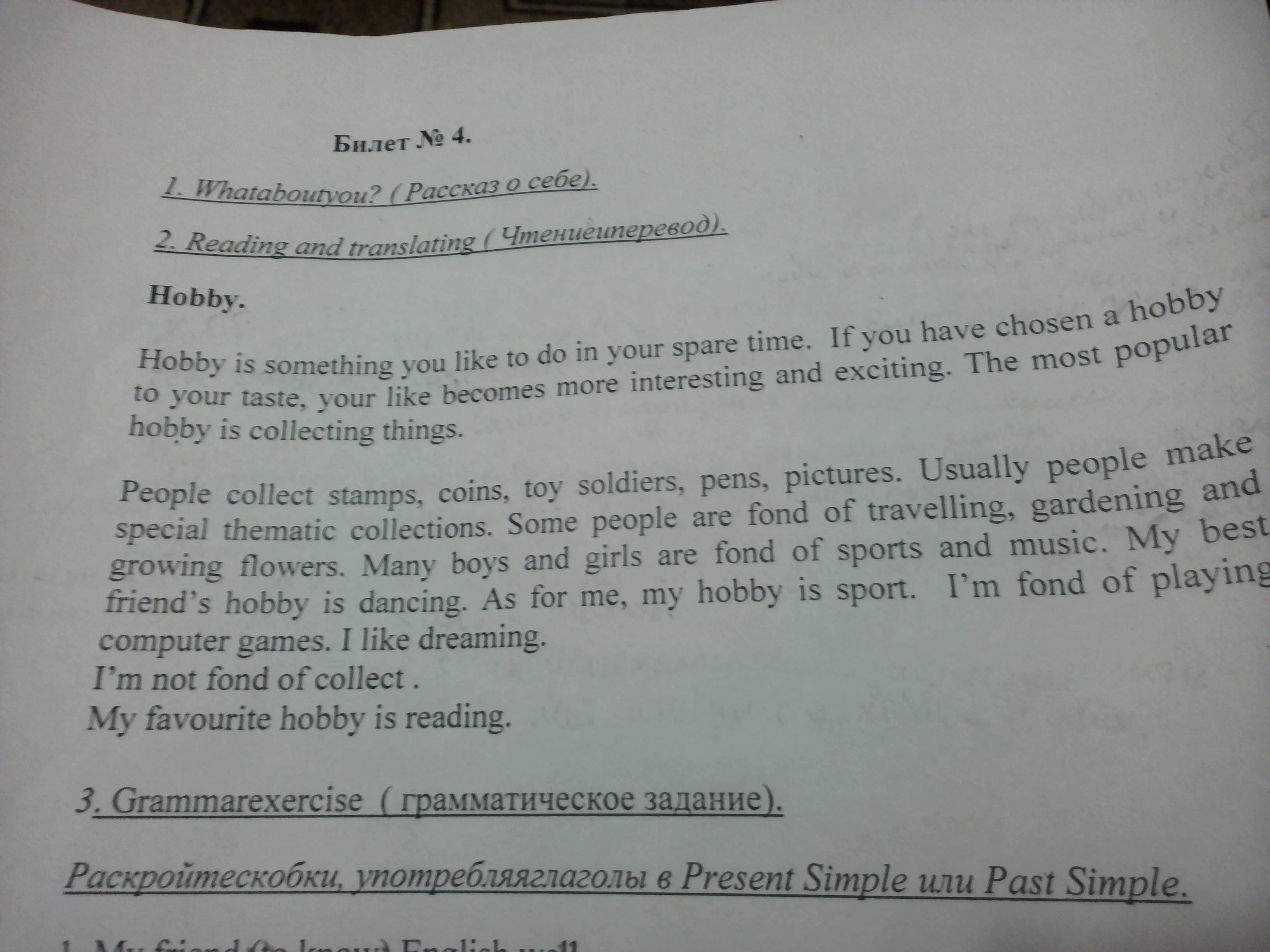 растущие цветы. Многие мальчики и девочки любят спорт и музыку ,танцы.А мое хобби-это спорт. Я люблю игратькомпьютерные игры. Мне нравится мечтать.Я не люблю собирать коллекцию.Мое любимое хобби-чтение.