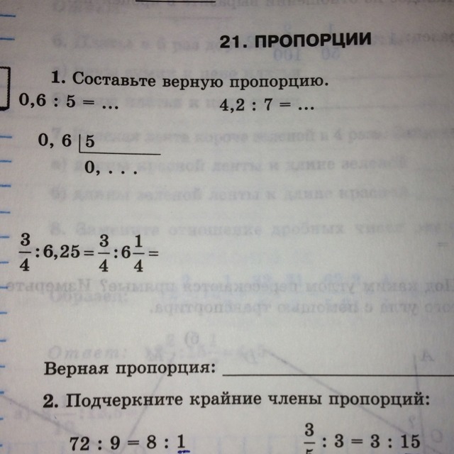 В общем пропорция- это когда оба числа верны например: легкий пример 6+1=4+2